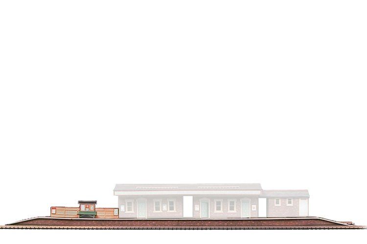 Een klassiek stationsgebouw in heel Engeland en de Britse eilanden in de stijl van spoorwegbouw aan het begin van de eeuw. Deze afbeelding toont het stationsgebouw centraal gepositioneerd op een vervaagd stationplatform (SQA01).